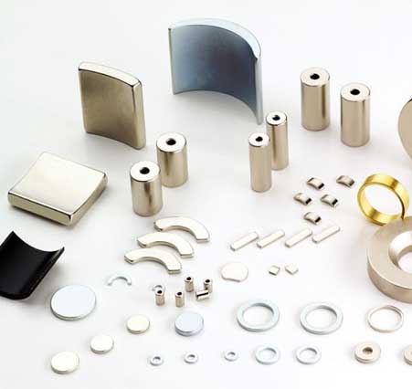 釹鐵硼永磁材料是以金屬間化合物Re2Fe14B為基礎的永磁材料。主要成分為稀土元素釹 (Nd)、鐵(Fe)、硼(B)。其中稀土元素主要為釹(Nd),為了獲得不同性能可用部分鏑(Dy)、鐠(Pr)等其他稀土金屬替代,鐵也可被鈷(Co)、鋁(Al)等其他金屬部分替代,硼的含量較小,但卻對形成四方晶體結構金屬間化合物起著重要作用,使得化合物具有高飽和磁化強度,高的單軸各向異性和高的居里溫度。