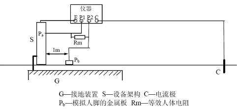 上述測量中,若儀器電壓輸入端不并聯等效人體電阻Rm,則所得結果為接觸電位差。