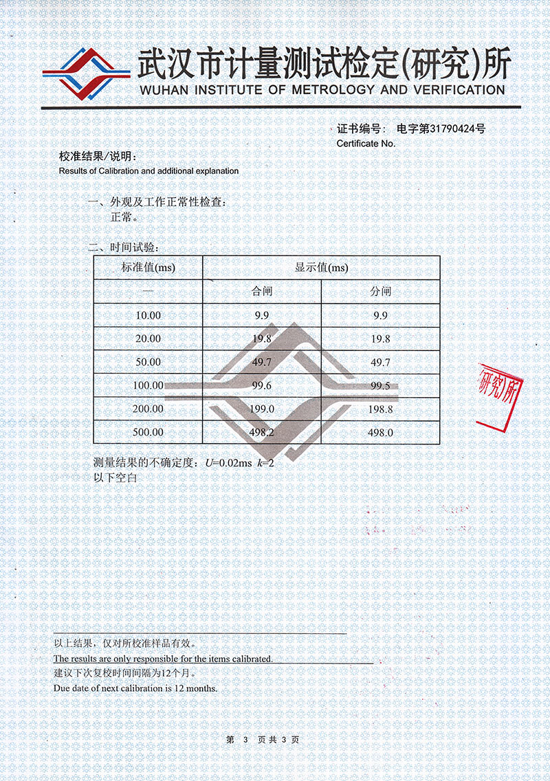 1.時(shí)    間:12個(gè)斷口的固有分、合閘時(shí)間,同相同期、相間同期。