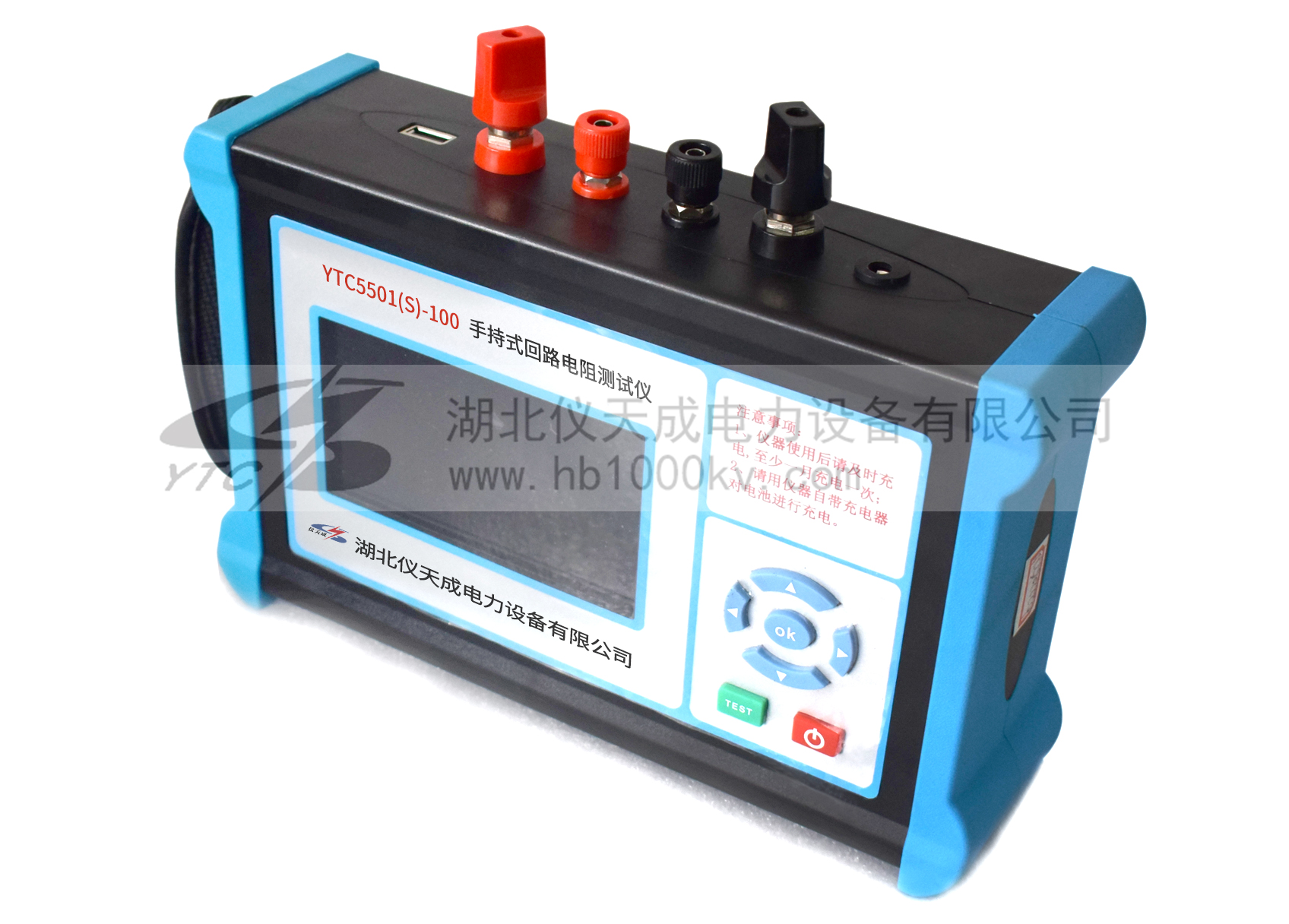 YTC5501(S)-100手持回路電阻測試儀是基于現代工業設計理念研發的新一代微電阻測試儀器。產品為手持式儀器,體積小,便于攜帶,內置鋰電池供電,尤其適合現場使用。采用 “四線”電流、電壓測試方法,能滿足高壓開關、斷路器、繼電器金屬觸點等微小電阻的測量。