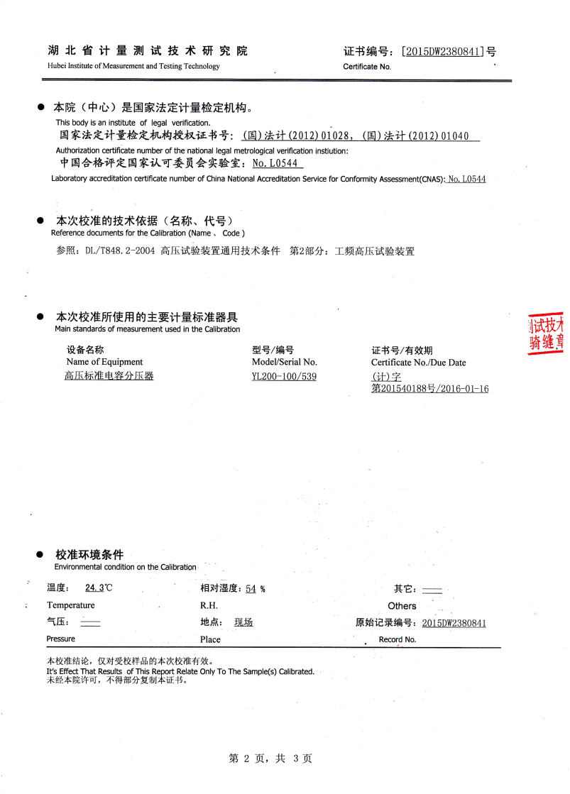 7、本裝置使用的電抗器采用了調節氣隙的方式來方便的可寬范圍的調節其電感值,這樣,在做工頻耐壓試驗時,對于電容量大于3000PF試品可以不配備電容器,就大大的減少了電容器的配備數,使試驗變得極為方便。