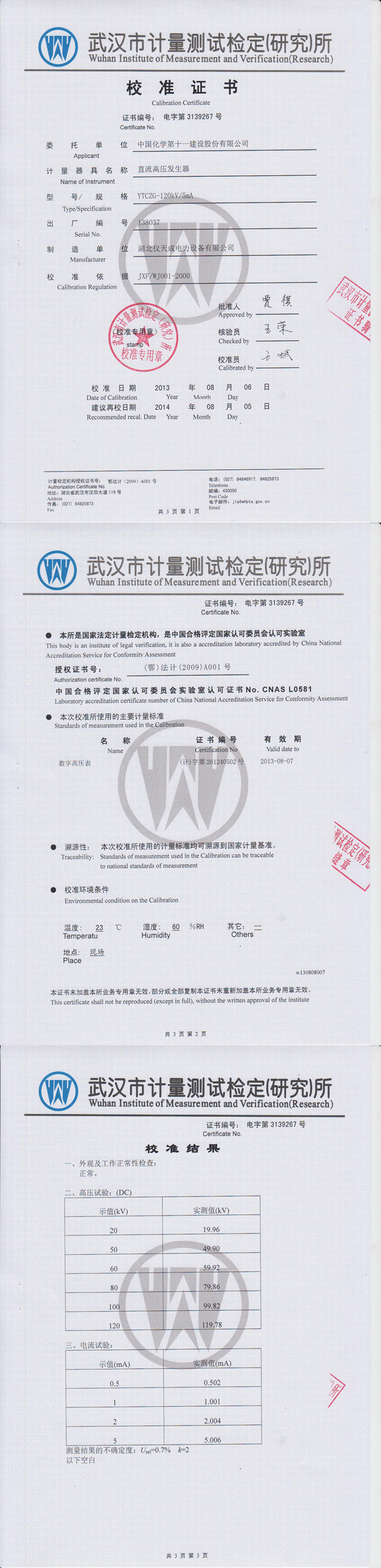 轉載:"YTCZG-120kV/2mA直流高壓發生器資質證書" 請注明來源于儀天成電力。 更多技術問題請致電儀天成電力客戶服務:027-87876585,技術部專線:027-87876585,在線客服:719388481